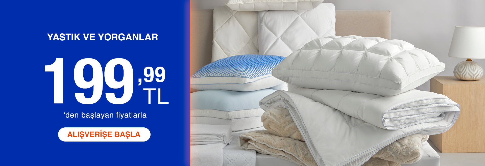 %100 pamuklu nevresim takımları, cildinize yumuşacık bir dokunuş sunarken, geniş desen ve renk seçenekleriyle her zevke hitap ediyor.Lastikli çarşaflar, pratik kullanımıyla yatağınızı kusursuzca sararken, yumuşacık yastık kılıfları ve konforlu yorganlar rahat bir uykuya davet ediyor. Destekleyici yastık seçenekleriyle de gece boyunca kesintisiz bir uyku deneyimi yaşayabilirsiniz.
