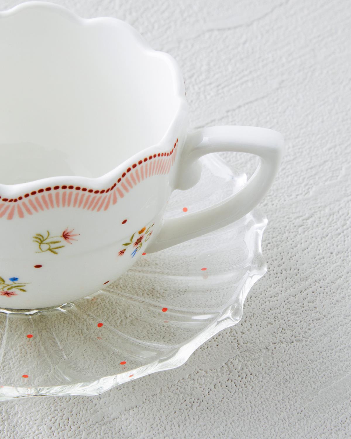 Daisy Days New Bone China 4 Parça 2 Kişilik Cam Tabaklı Kahve Fincan Takımı 80 ml Pembe - Yeşil (000000010048998001)
